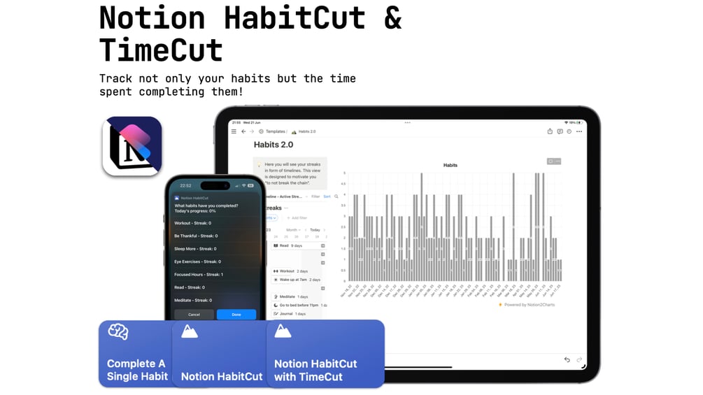 Notion Habit Tracker with Time Tracker Template & Siri Shortcut | HabitCut & TimeCut